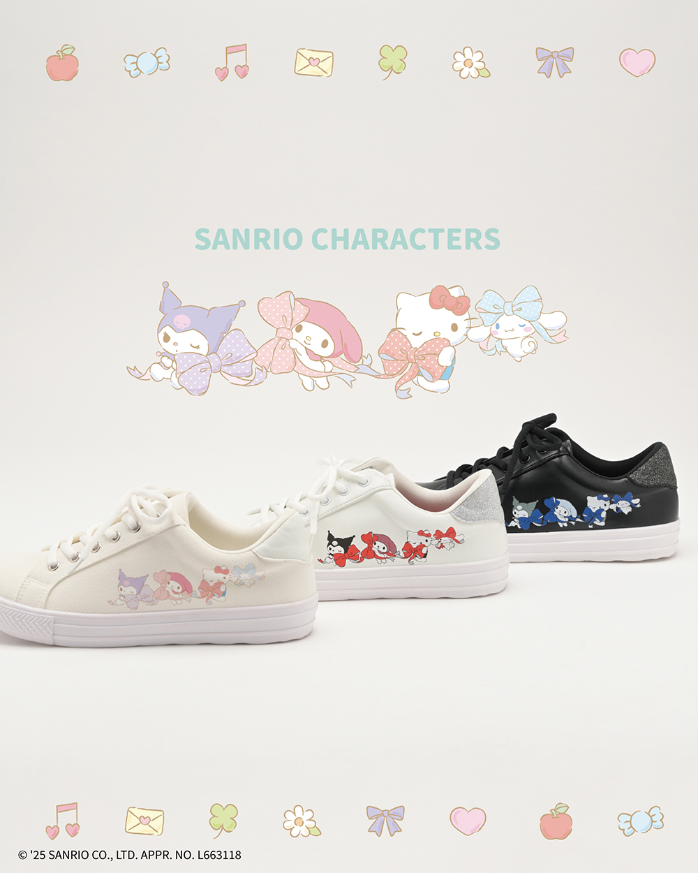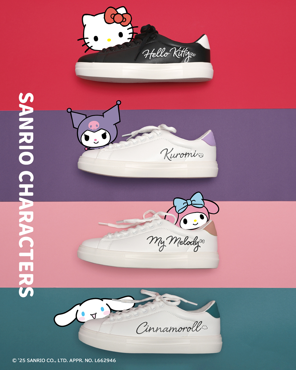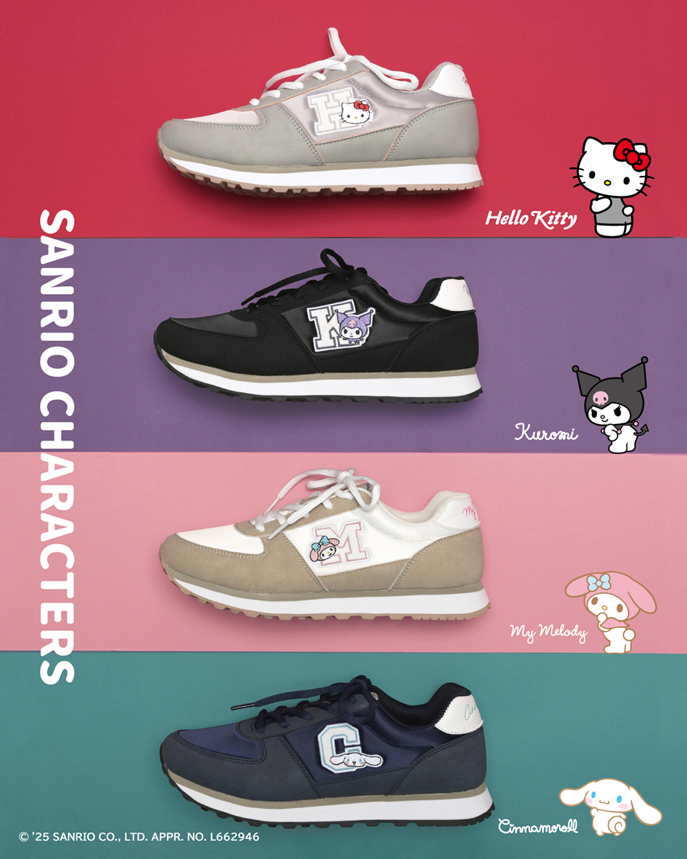 大人かわいいロゴや刺繍ワッペンで、さりげなく推しキャラをアピールできるラインナップです。「履けるサンリオ」はキャラクターグッズとしてではなく、ファッションアイテムとしても活躍するデザインに仕上げました。